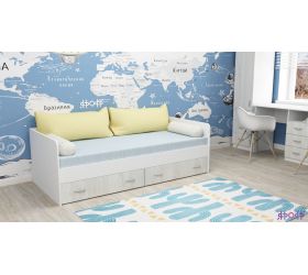 Кровать Каспер с мягкой спинкой и фотопечатью (800х2000) Белый/Бирюза