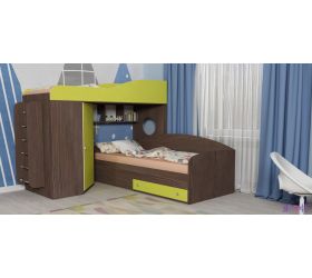 Кровать-чердак Кадет-2 угловая с металлической лестницей Бодего/Лайм