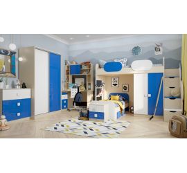 [name] => Шкаф под кровать второго яруса Скай люкс (Синий/Белый/корпус Клен)