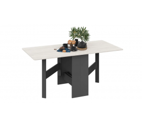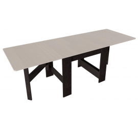 В сложенном состоянии раскладной стол выглядит как узкий корешок книги, облаченный с двух сторон в «обложку» – по бокам его прижимают столешницы. Удобно, что поднимая одну из них, человек не нарушает устойчивость изделия.