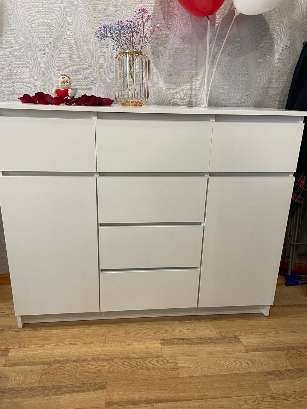 Комод Мори МК 1200.4 - это не только стильный предмет интерьера, но и достаточно функциональная вещь для спальни, гостиной,детской, прихожей. Основное его предназначение - хранение одежды, постельного белья и других небольших вещей. Практичный, компактный и функциональный комод Мори имеет 6 удобных выдвижных ящиков. Комод разделен на две секции перегородками, в каждой секции по три выдвижных ящика на роликовых направляющих белого цвета. На фасадах ящиков отсутствуют ручки, функцию ручек выполняет сам фасад. Открывание ящиков производится за счет пространства между планками и фасадом.